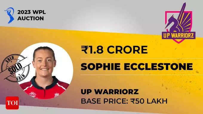 UP Warriorz' first pick of the day was England's Sophie Ecclestone, who was bought for Rs 1.8 crore.