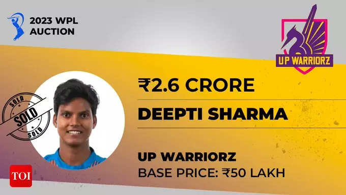 Seasoned India all-rounder Deepti Sharma was sold to UP Warriorz for Rs 2.60 crore as she became the second highest Indian buy of the day.