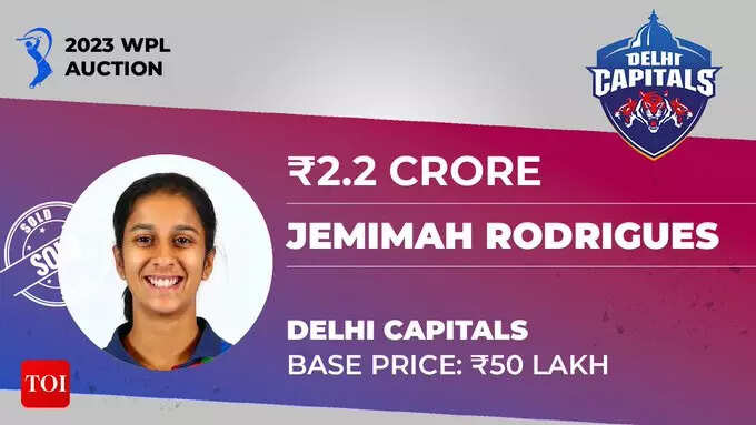 Delhi Capitals made their first buy of the day in form of Jemimah Rodrigues, who was bought for Rs 2.20 crore. They pulled off a coup by roping in one of contemporary women's cricket's best leaders Meg Lanning of Australia for Rs 1.10 crore.
