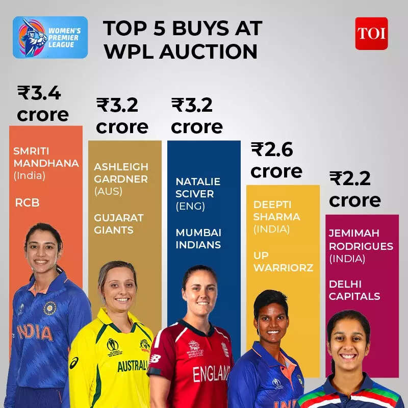 Aussie all-rounder Ashleigh Gardner, who recently starred in team's first win at the ongoing Women's T20 World Cup against New Zealand became the second highest buy of the day with Gujarat Giants paying Rs 3.2 crore for her services. England all-rounder Natalie Sciver was also bought for Rs 3.2 crore by the Mumbai franchise.
