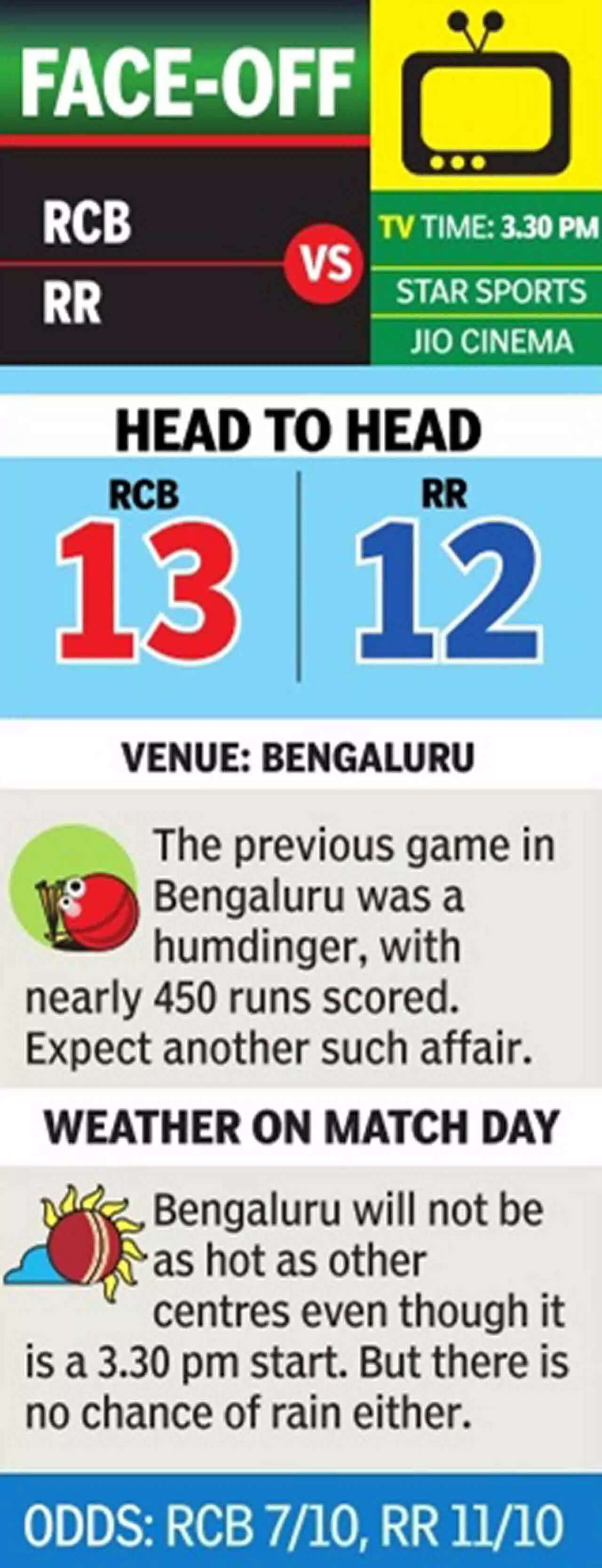 BENGALURU: Royal Challengers Bangalore openers have been prolific this season. Faf du Plessis is the top-run scorer in the league with 343 runs while Virat Kohli has 279 against his name. Rajasthan Royals openers - Jos Buttler (244) and Yashasvi Jaiswal (180) - are not too far away.