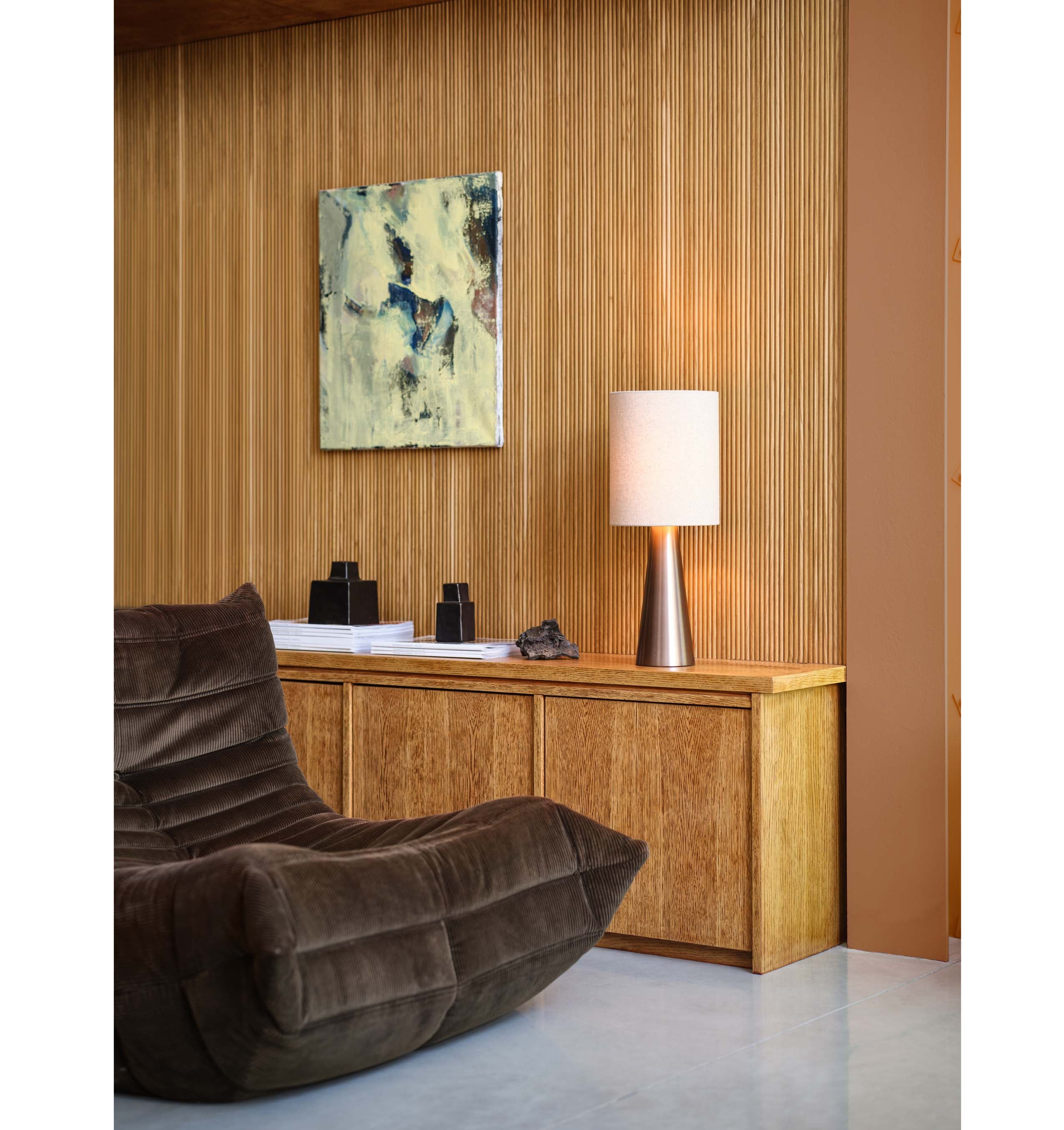 “Soft linen drum shades on lighting fixtures further enhance this sense of calm; gently diffusing light and bringing a serene, Japandi-inspired softness to the space.”