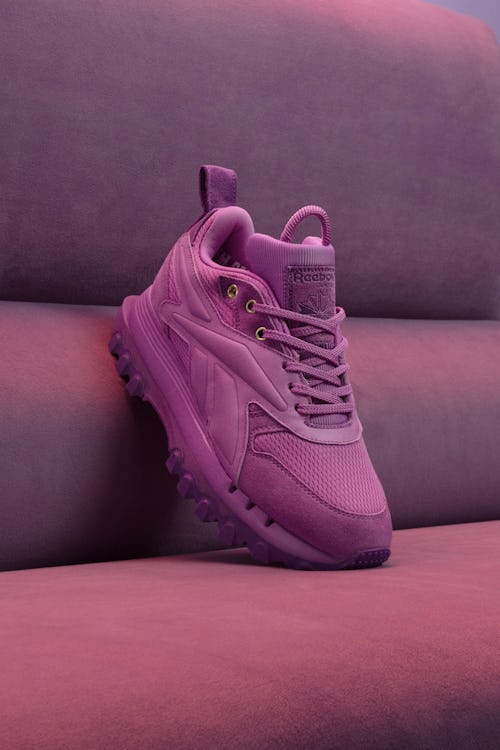 Cardi B chose a favorite sneaker from her two previous Reebok collections, the Classic Leather. Its third iteration sees the kicks take on a monochromatic “Ultra Berry” color scheme that’s meant to be paired with a plush faux fur jacket. Its oversized heel and tongue tabs allow for easy access, while the lug outsoles take the sneaker to new heights, literally.