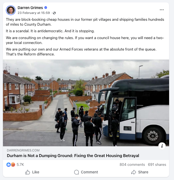 Darren Grimes, a former GB News presenter, published a blog post in which he said London councils were “quietly shifting” their tenants “hundreds of miles north”, linking the issue to Durham’s housing waiting lists.
