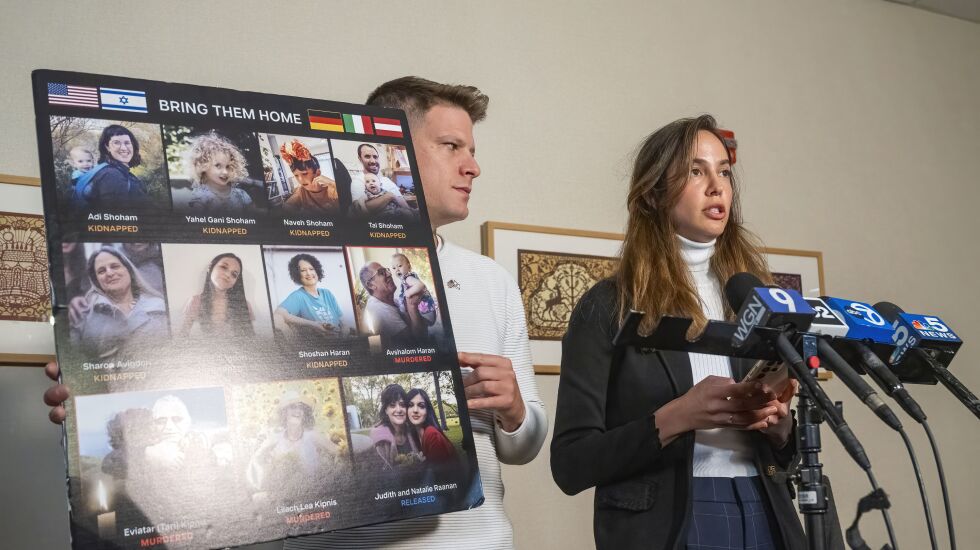 On Wednesday, Sella and two other families from Israel whose loved ones were killed or captured by Hamas attended a vigil at Anshe Emet Synagogue on the North Side, calling for the safe return of the 240-some hostages being held by Hamas.