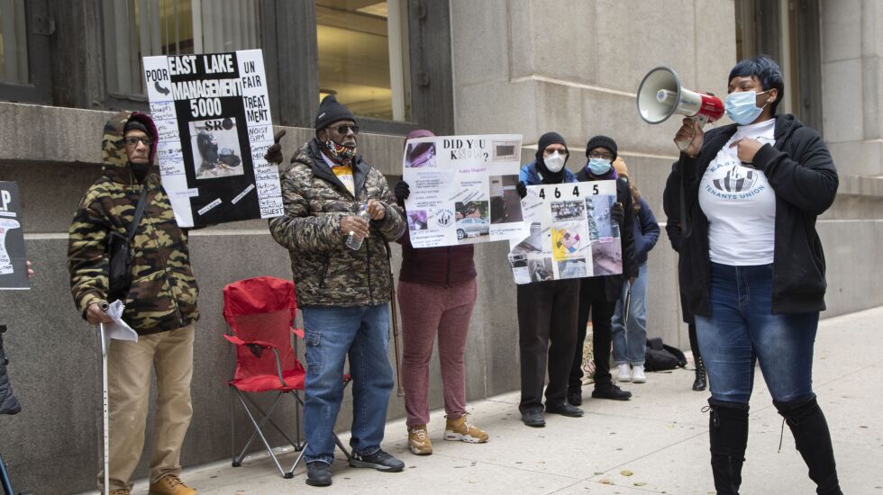He along with a group of residents who have formed the “East Lake Tenants Union” organized a news conference Tuesday outside of City Hall, urging city officials to stop working with the East Lake Management company until improvements are made to the buildings. Owens lives at the Washington Park single-room occupancy affordable-housing building located at 5000 S. Indiana Ave., which is managed by East Lake.