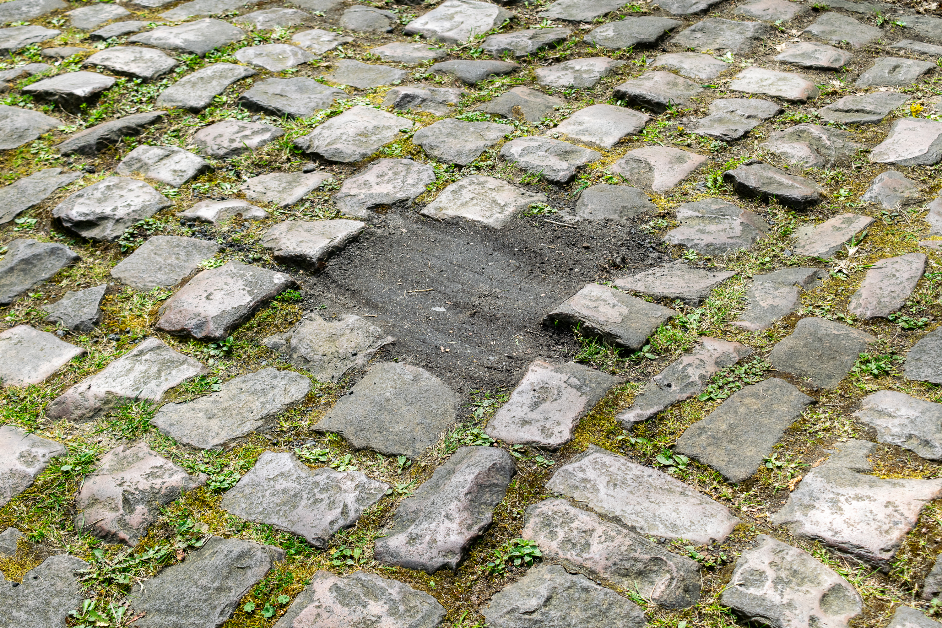 The replacement stone, which is roughly twice the size of most of the cobblestones that feature in the section, also has a circular hole in it, though we don't know the reason for this.