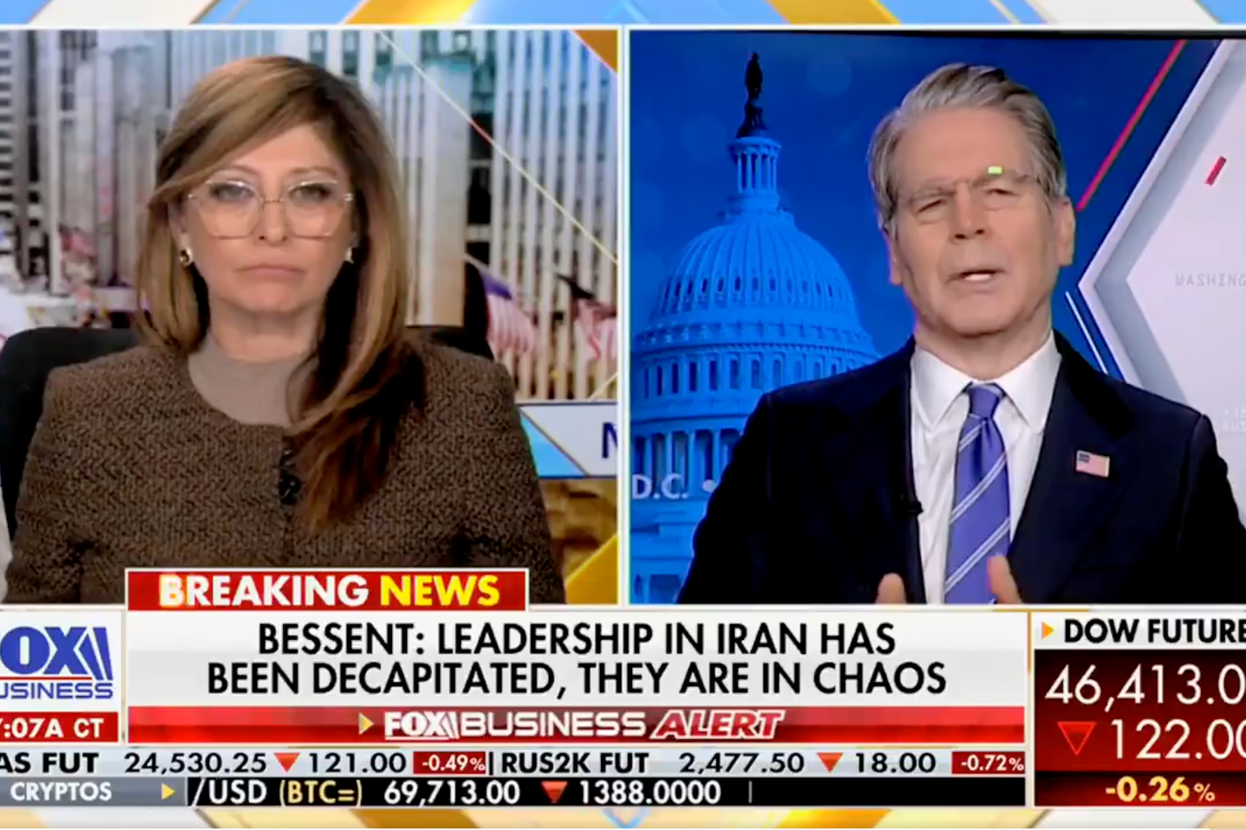 In the same interview between Collins and Perry, the host also challenged her guest about Treasury Secretary Scott Bessent, telling Maria Bartiromo on Fox Business that the Trump administration might suspend sanctions on Iranian oil already at sea to help tackle rising gas prices.