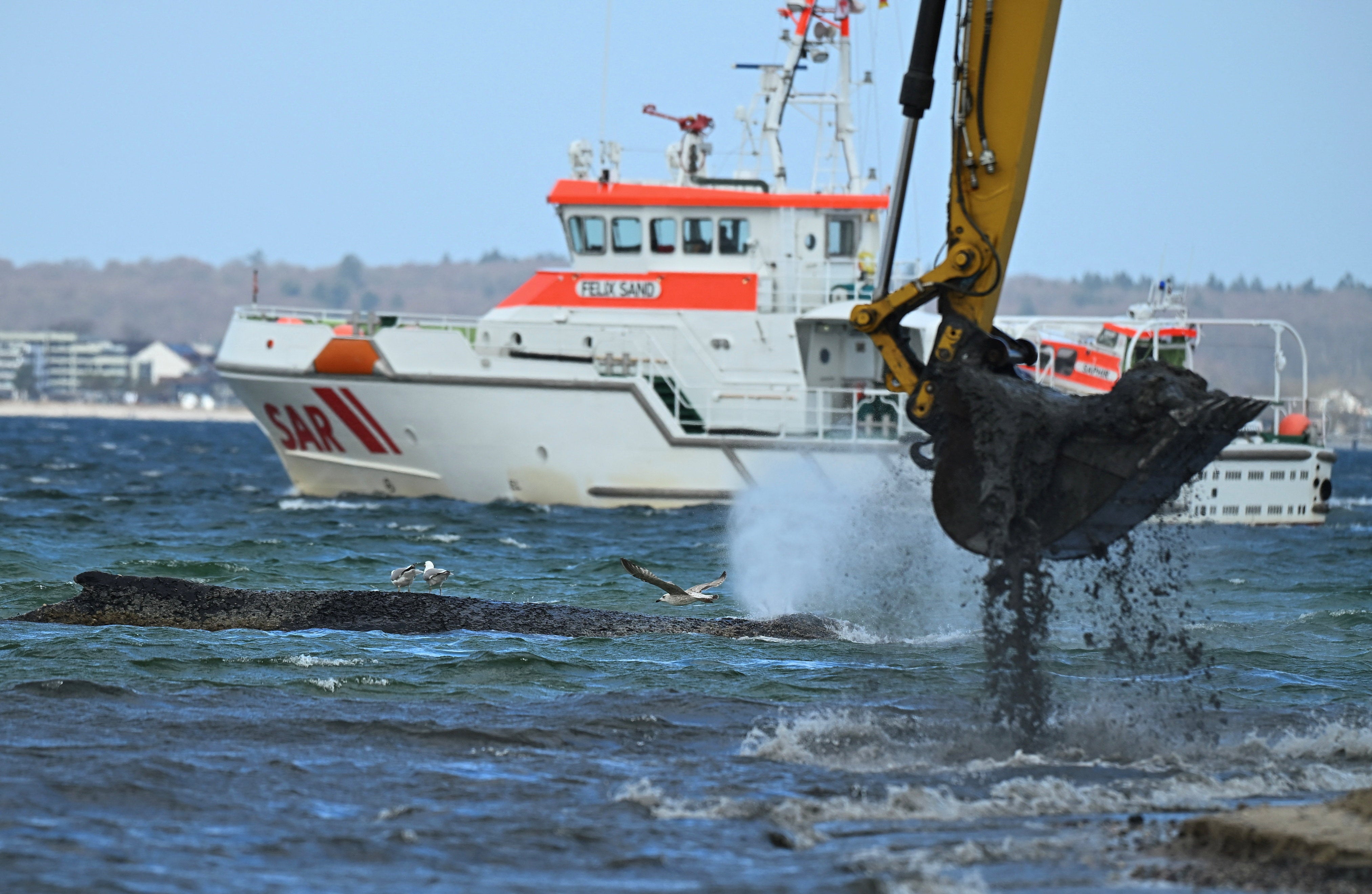 A larger excavator has now been brought in to create a channel, according to a spokesperson for the municipality of Timmendorfer Strand.