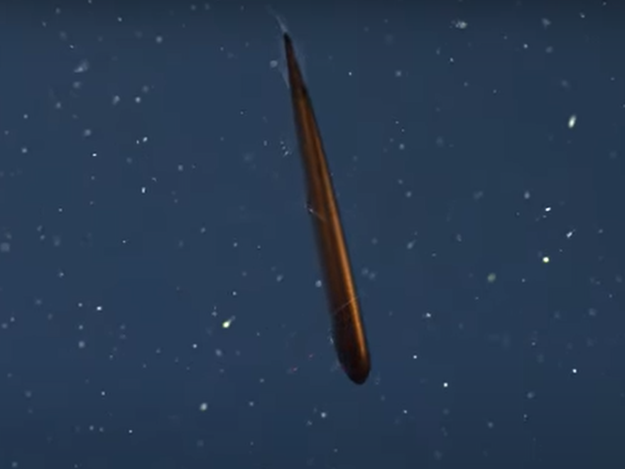 With an appearance akin to something out of a science-fiction flick, these fish have long narrow bodies and little fins. And though the specimen the researchers encountered was a beautiful shade of orange, most types of dragonfish are black. In fact, the pigment of their skin is some of the blackest blacks found in nature, MBARI said.