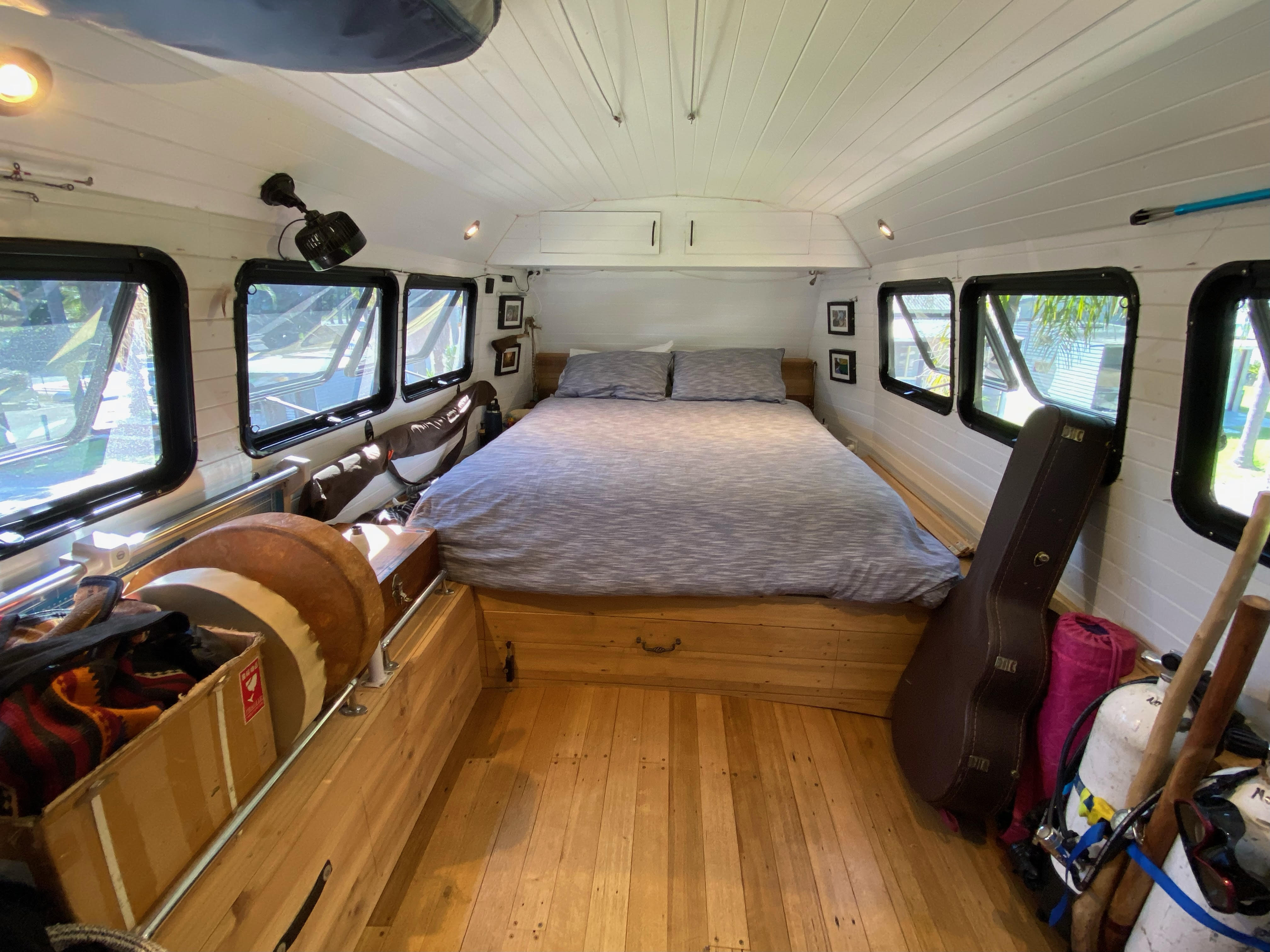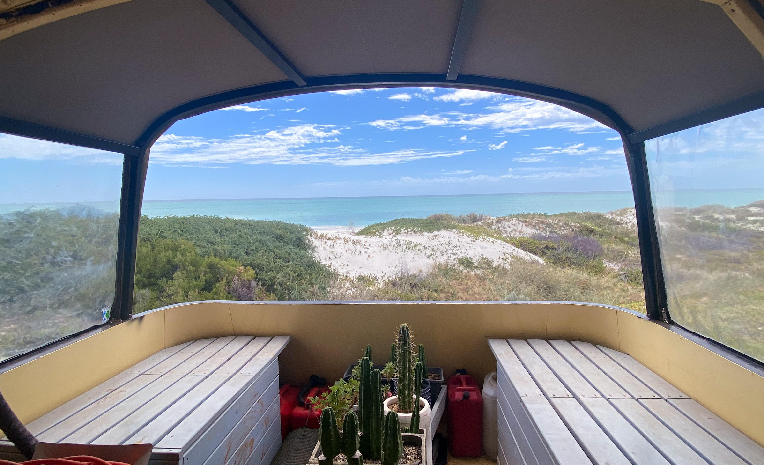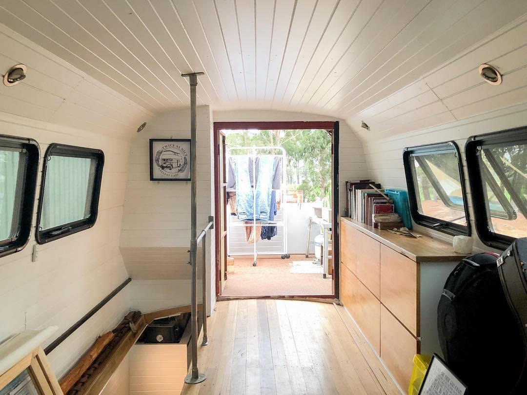 "It was a three-year restoration project for the frame and 18 months to fit the bus out of reclaimed timber from hard rubbish in Melbourne."