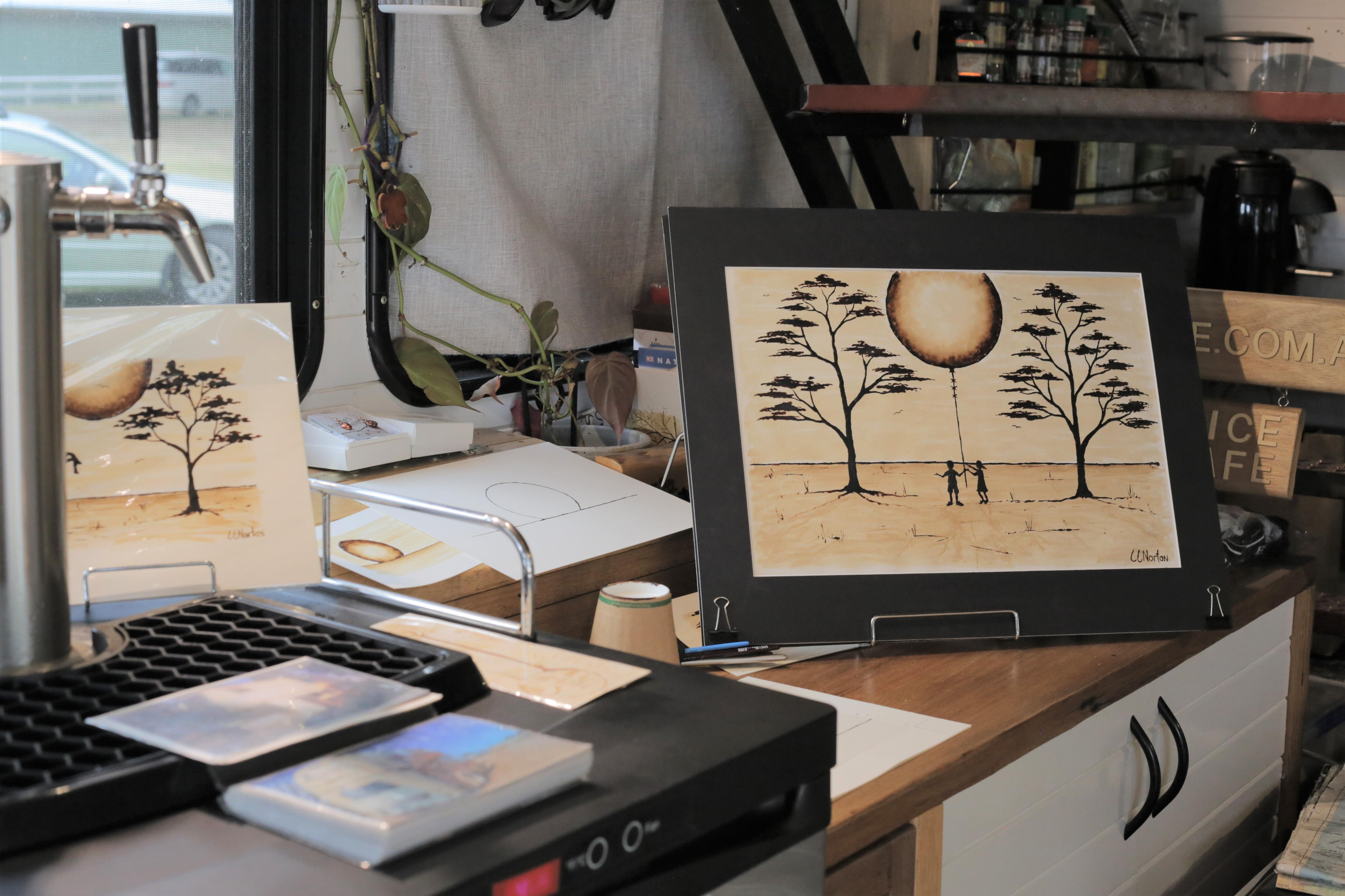 Mr Norton describes his endeavour as a closed-loop economy where the sales of his coffee and artworks fund the roaming gallery cafe and raise money for charity.