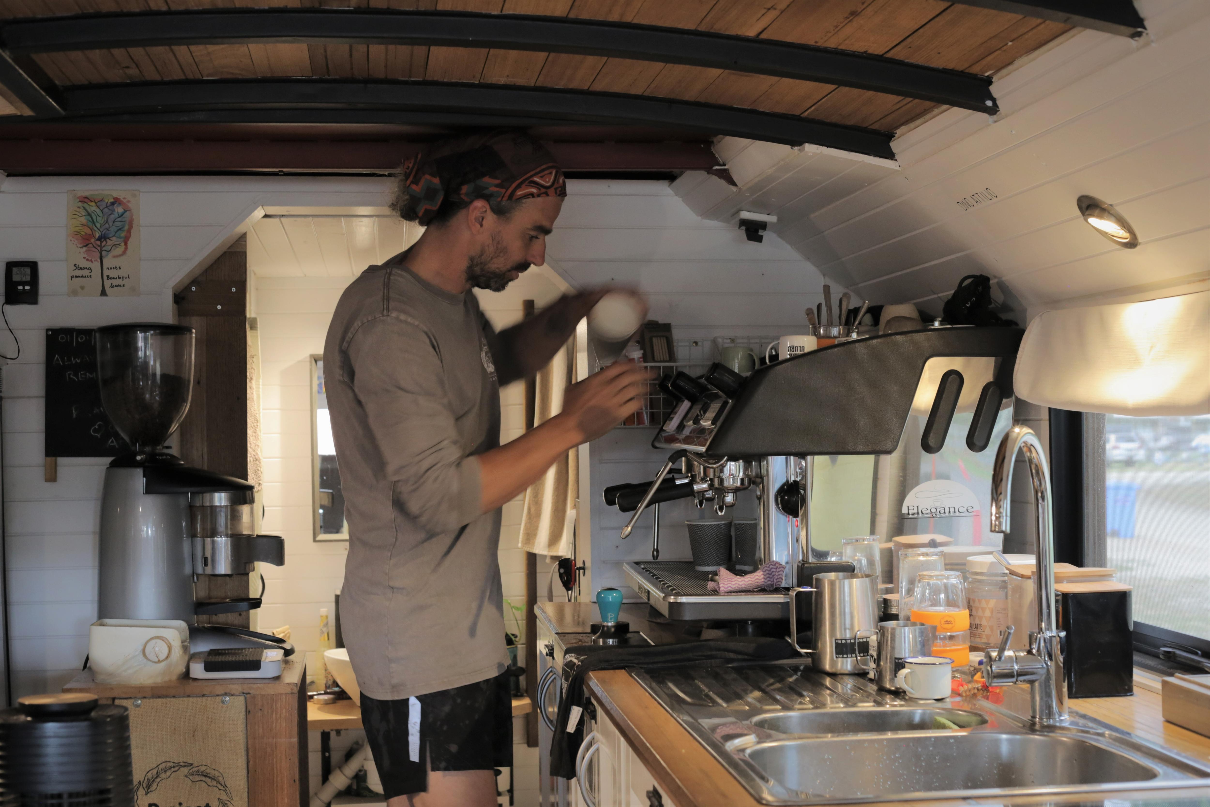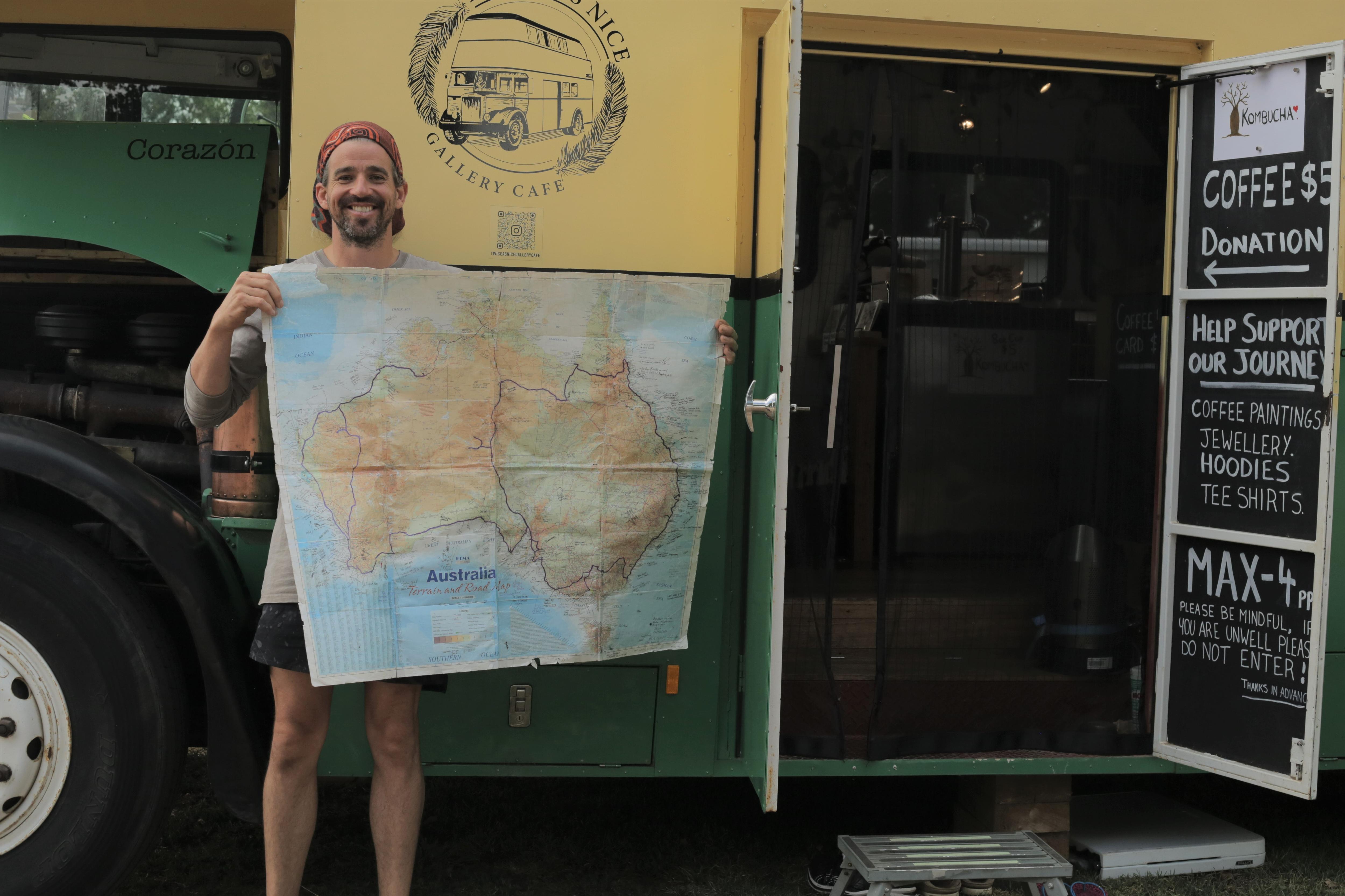 "The funds I make from the coffee painting doesn't help you save lots of money, but living in the bus, the people you get to meet and where you are on the road makes the journey worth it."