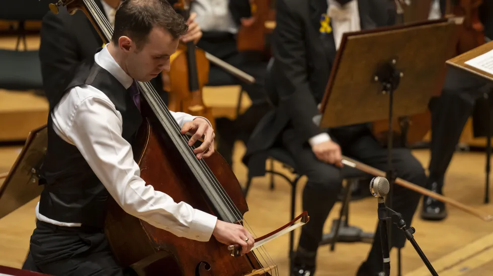 Because of its massive size, the double bass is sometimes misconstrued as musically ungainly and unwieldy. But as he breezed through the work’s tricky passagework, his left hand flying along the fingerboard, Alexander Hanna, the orchestra’s principal bassist, made the instrument seem just the opposite—lithe and graceful.