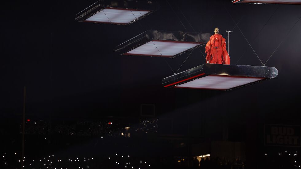 She began and ended the Super Bowl 57 halftime show hovering high above the field at State Farm Stadium in Glendale, Arizona. The performance delivered on fan expectations but it included a major surprise — the singer is pregnant with her second child.