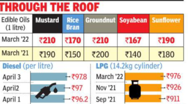 The anxiety began with LPG touching Rs 976 for a 14.2kg cylinder and diesel nearing Rs 90/litre last month. For Rajani Mukherjee, a homemaker, Sunday breakfast has turned bitter. For the first time in the past couple of yea-rs, she was forced to leave her family’s favourite luchi and begun bhaja out of the menu, introducing roti and sabji ins-tead. Mukherjee, a resident of Behala, is upset with the change since her 13-year old son Ratul is not fond of the new spread.