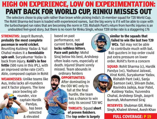 NEW DELHI: The BCCI’s Ajit Agarkar-led national selection committee went largely with tried and tested choices while announcing the Indian team on Tuesday for the upcoming T20 World Cup in the US and Caribbean in June.