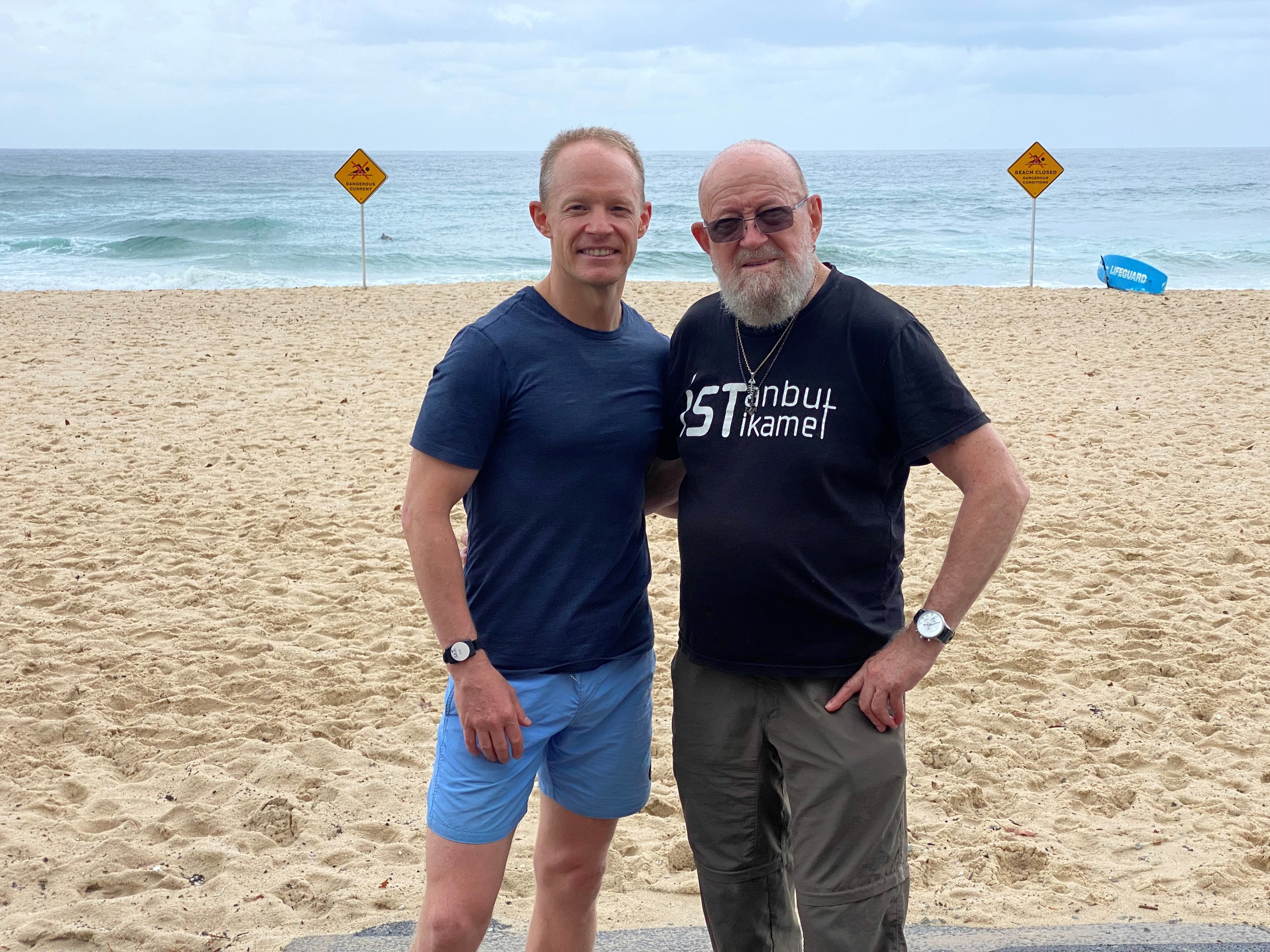 Rob and his grandson Alistair (Ivan's son) at Bronte beach. (Supplied: Ivan Power)