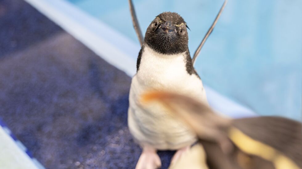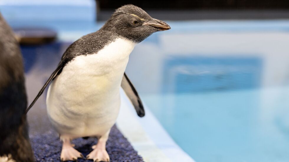 When it hatched, the chick weighed almost 2 pounds and now weighs a little more than 4 pounds, according to the aquarium, and is between 1 and 1.5 feet tall. It’s very close in appearance to an adult rockhopper, but still doesn’t sport the species’ distinctive yellow eyebrow feathers.