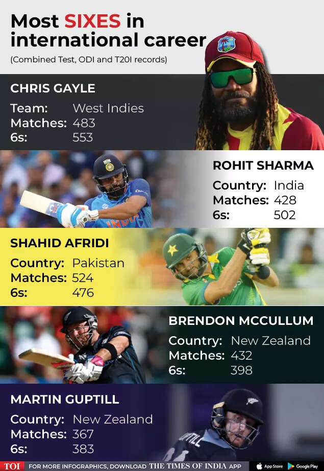 NEW DELHI: Indian captain Rohit Sharma on Wednesday became the first Indian cricketer to whack 500 sixes in international cricket. Overall, the swashbuckling opener is the second in the world to achieve this milestone.