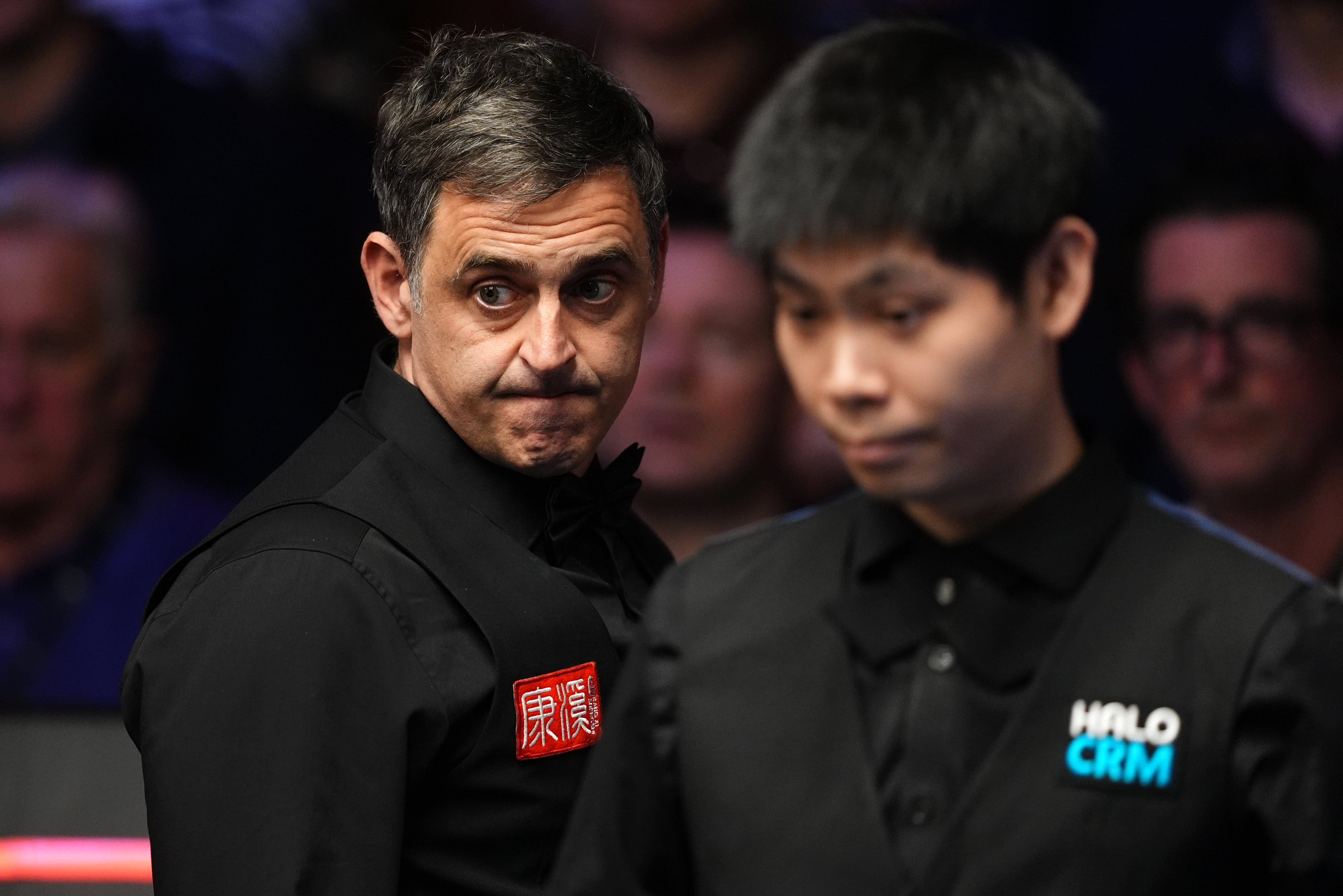 Ronnie O’Sullivan got his tables mixed up as he walked out to face He Guoqiang at the Crucible (Martin Rickett/PA)