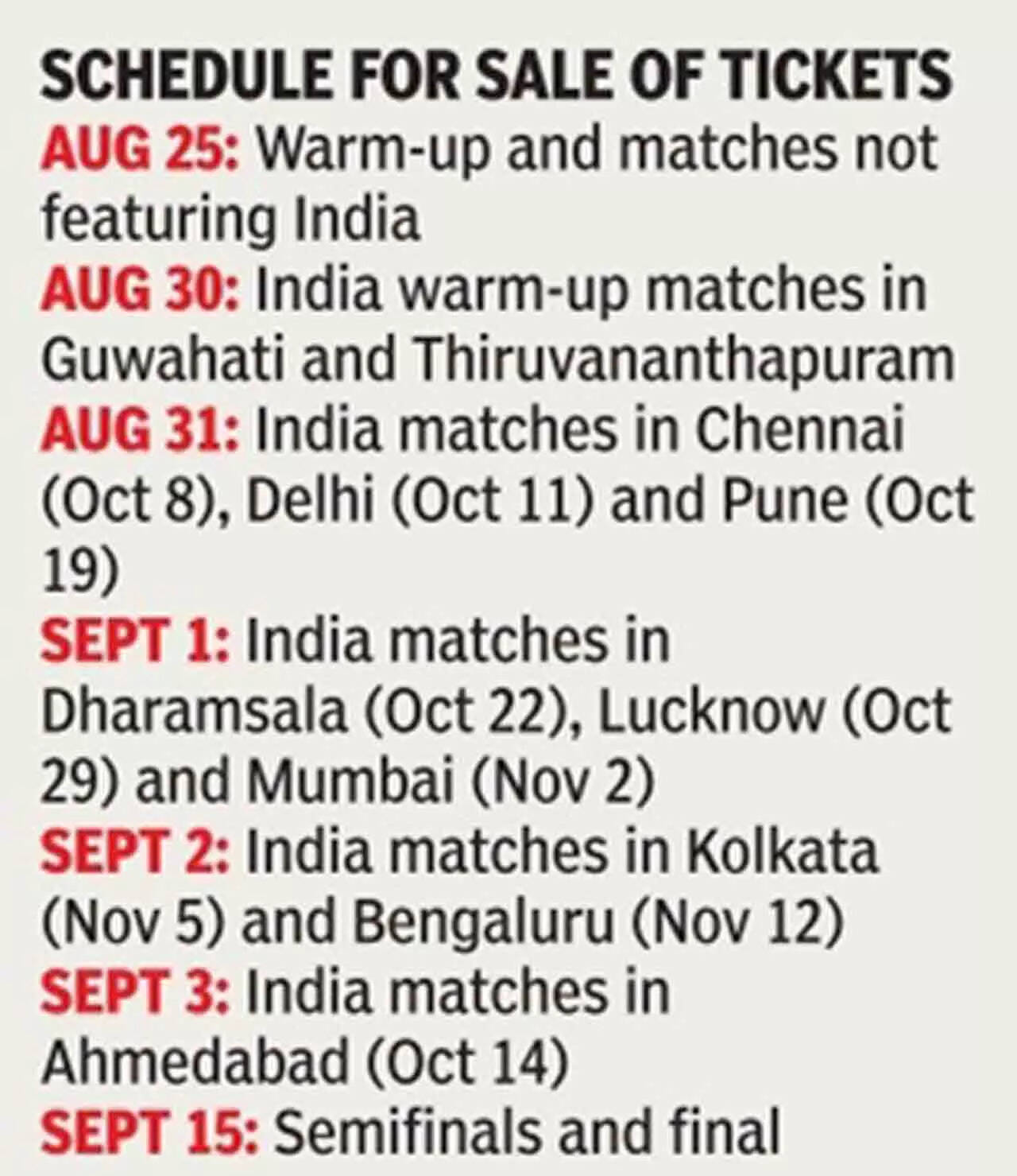 The Australia-South Africa match in Lucknow has also been brought forward by a day and will take place on October 12 instead of October 13. The England-Afghanistan game in Delhi, which was originally scheduled for October 14, will be played on October 15.