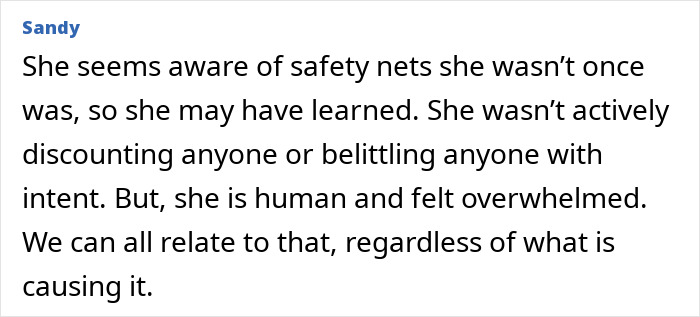 “She wasn’t actively discounting anyone or belittling anyone with intent. But, she is human and felt overwhelmed. We can all relate to that, regardless of what is causing it,” one fan wrote.