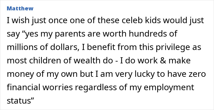 Some people said the actress didn’t have the right to complain given the “safety net” provided by her family