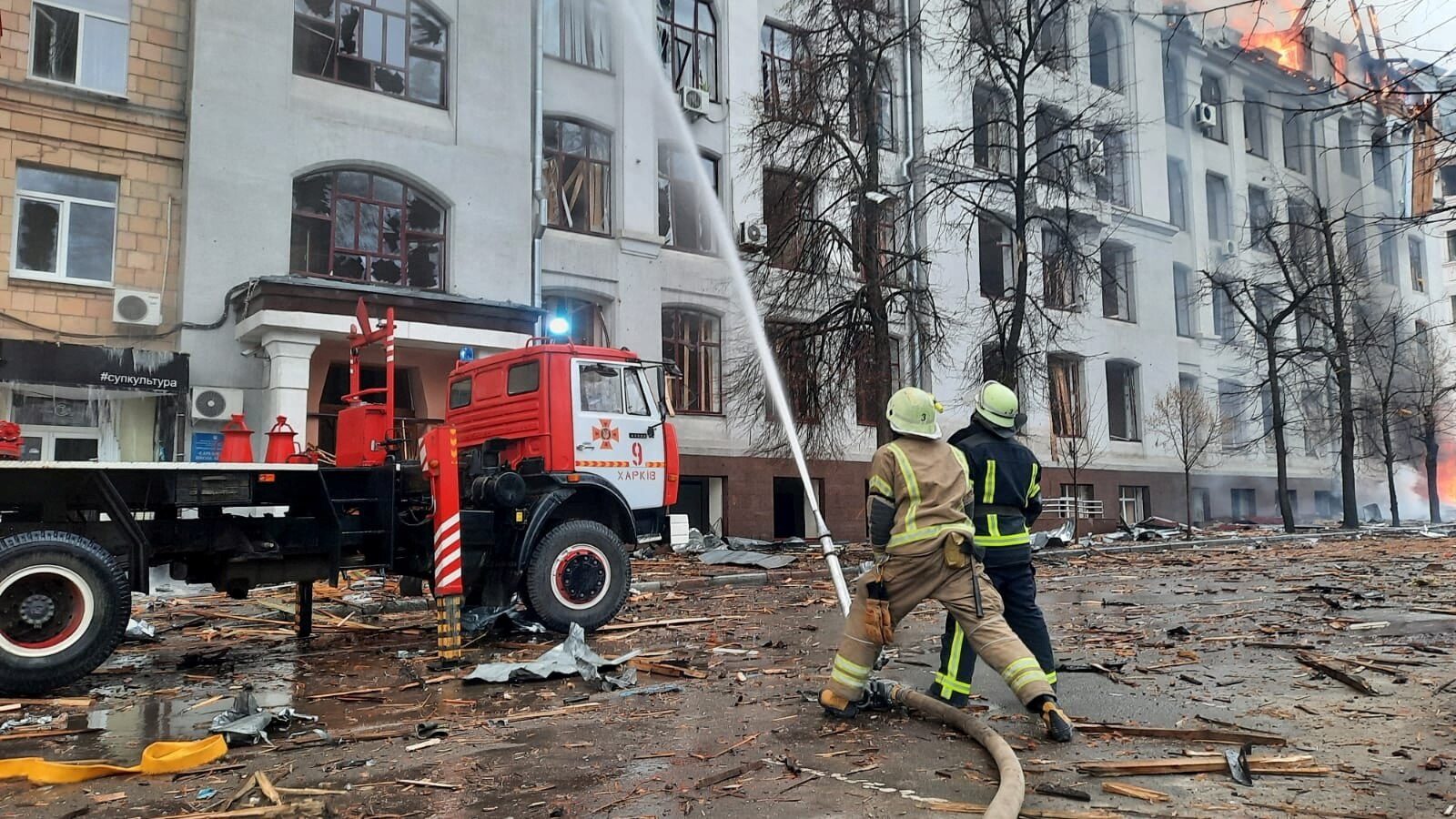 Russian attacks, many with missiles, blew the roof off Kharkiv's five-storey regional police building and set the top floor on fire, and also hit the intelligence headquarters and a university building