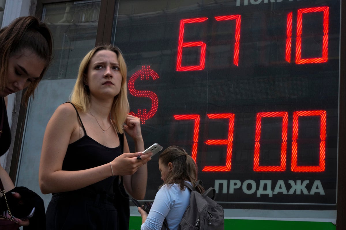 The ruble traded at 58.8 to the dollar Friday, making it worth more than the day before the invasion of Ukraine, when it took 78.8 rubles to reach $1.