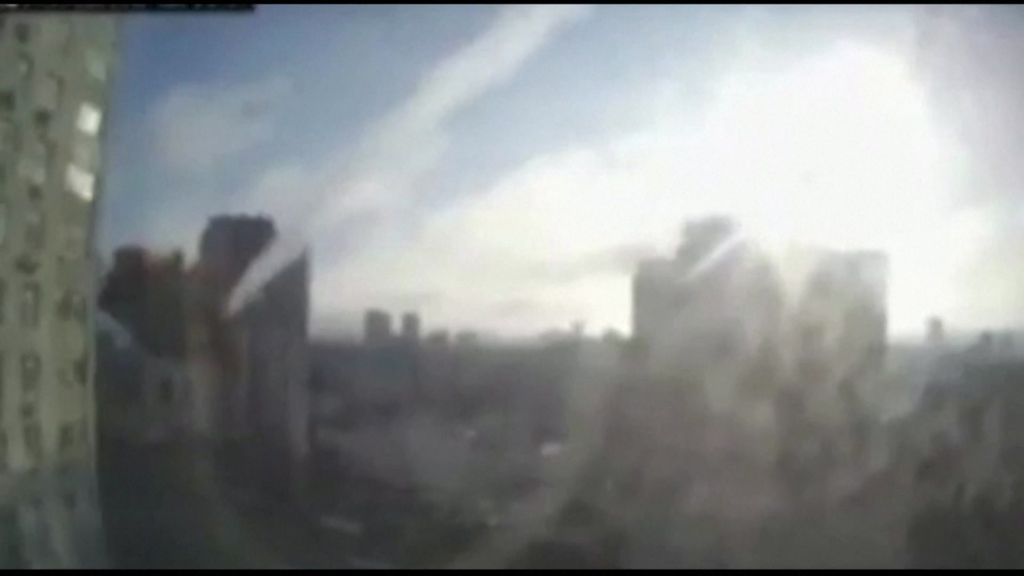 Dramatic footage captured from both inside and outside of an apartment building captured the moment a missile hit the structure in Kyiv.
