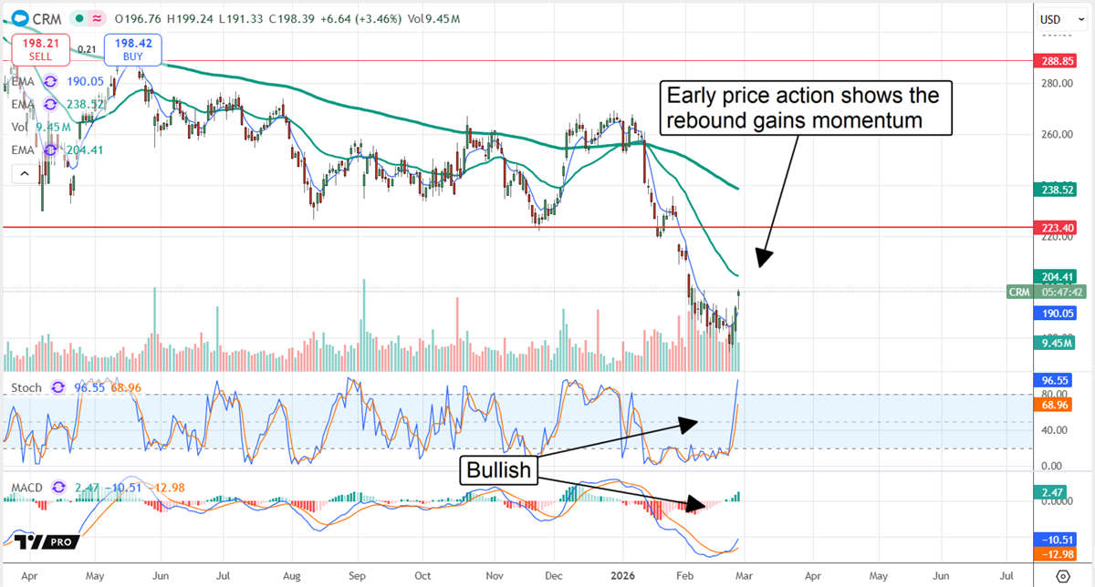 The post-release price action was mixed, with the early pre-opening market in decline but recovering soon before the open. The early price action reveals a bullish market, rebounding from long-term lows, with the potential to accelerate its advance in upcoming sessions. The indicators, including moving average convergence divergence (MACD) and stochastic, signal a price bottom and a strong technical entry signal for market watchers.