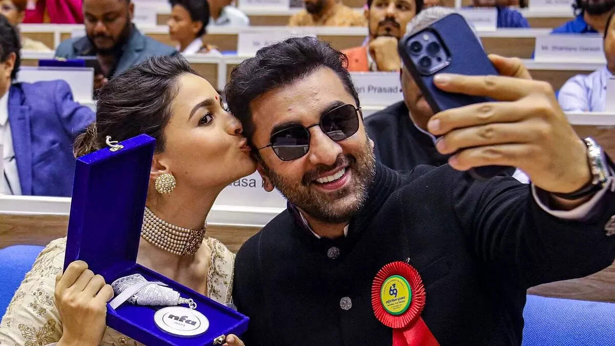Several Bollywood celebrities recently made their presence felt at the 69th National Film Awards ceremony held in Delhi on October 17. Alia Bhatt, who was receiving the award for her performance in Sanjay Leela Bhansali's 'Gangubai Kathiawadi' was accompanied by her husband Ranbir Kapoor at the event. The actor was seen capturing wife Alia's glorious moment on stage with the honourable President Droupadi Murmu on his phone while seated among the audience.
