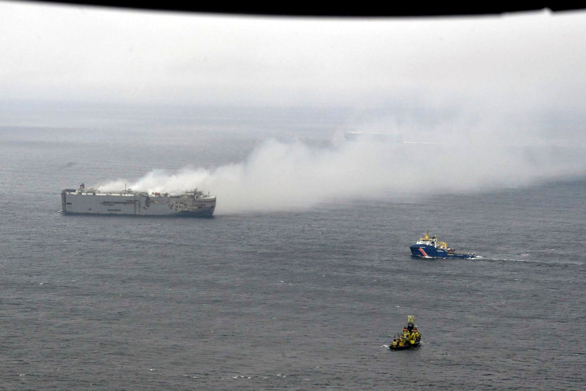 The Fremantle Highway was still ablaze Friday and being held by a tugboat 16 kilometers (10 miles) off the coast of the northern island of Terschelling, Netherlands Coastguard spokesperson Lea Versteeg said. The burning freighter is close to busy North Sea shipping lanes and an internationally renowned migratory bird habitat.