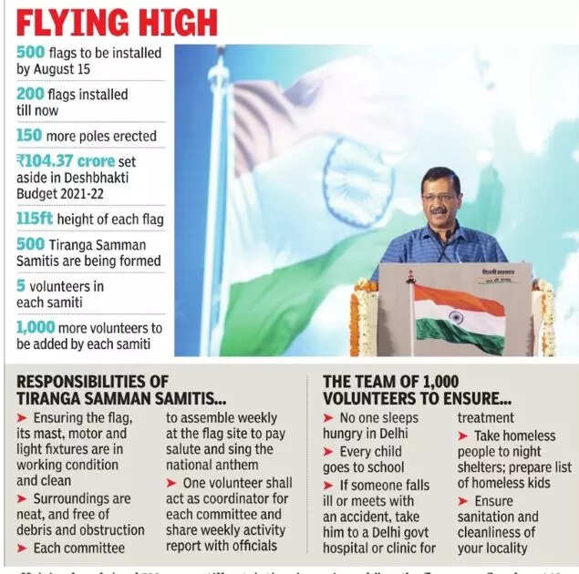 NEW DELHI: To ensure that the high-mast flags installed across the city by Delhi government are properly maintained, chief minister Arvind Kejriwal launched Tiranga Samman Samitis on Saturday. The condition of each flag will now be the responsibility of a samiti comprising five volunteers.