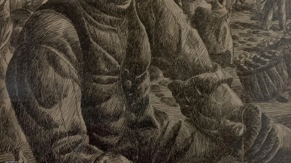 Kyle Johnson, the caretaker for his mother Nichelle Nichols, who has struggled with memory loss, owns a work by his uncle that depicts the mending of shoes in a medieval village.