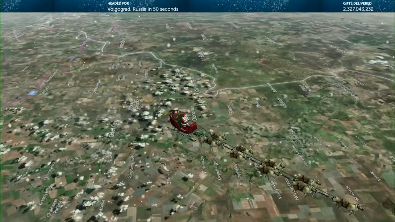 The NORAD Santa tracker is up and running! We can see Santa making his way from the North Pole towards Russia to begin the start of his journey.