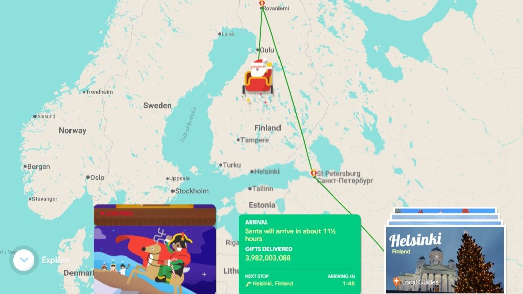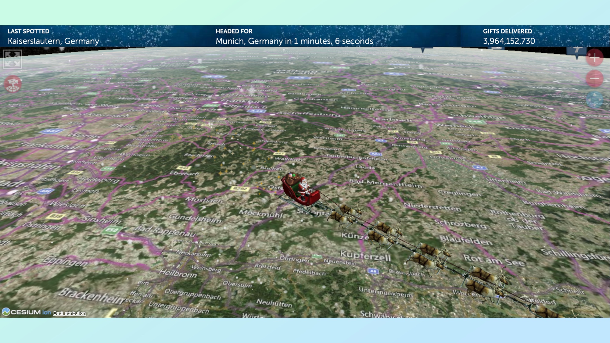 By the time you read this, Santa will have blown through Munich in Bavaria, according to the NORAD tracker, as he criss-crosses his way across Western Europe. That presents delivered counter is getting very close to 4 million, incidentally.