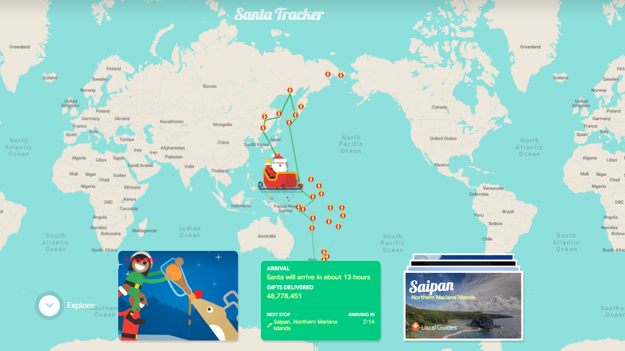NORAD's tracker may not be running just yet, but according to Google ol' St. Nick is getting on with the job at hand! He's already delivered over 2.7 million gifts and is heading straight on towards Papua New Guinea right now!