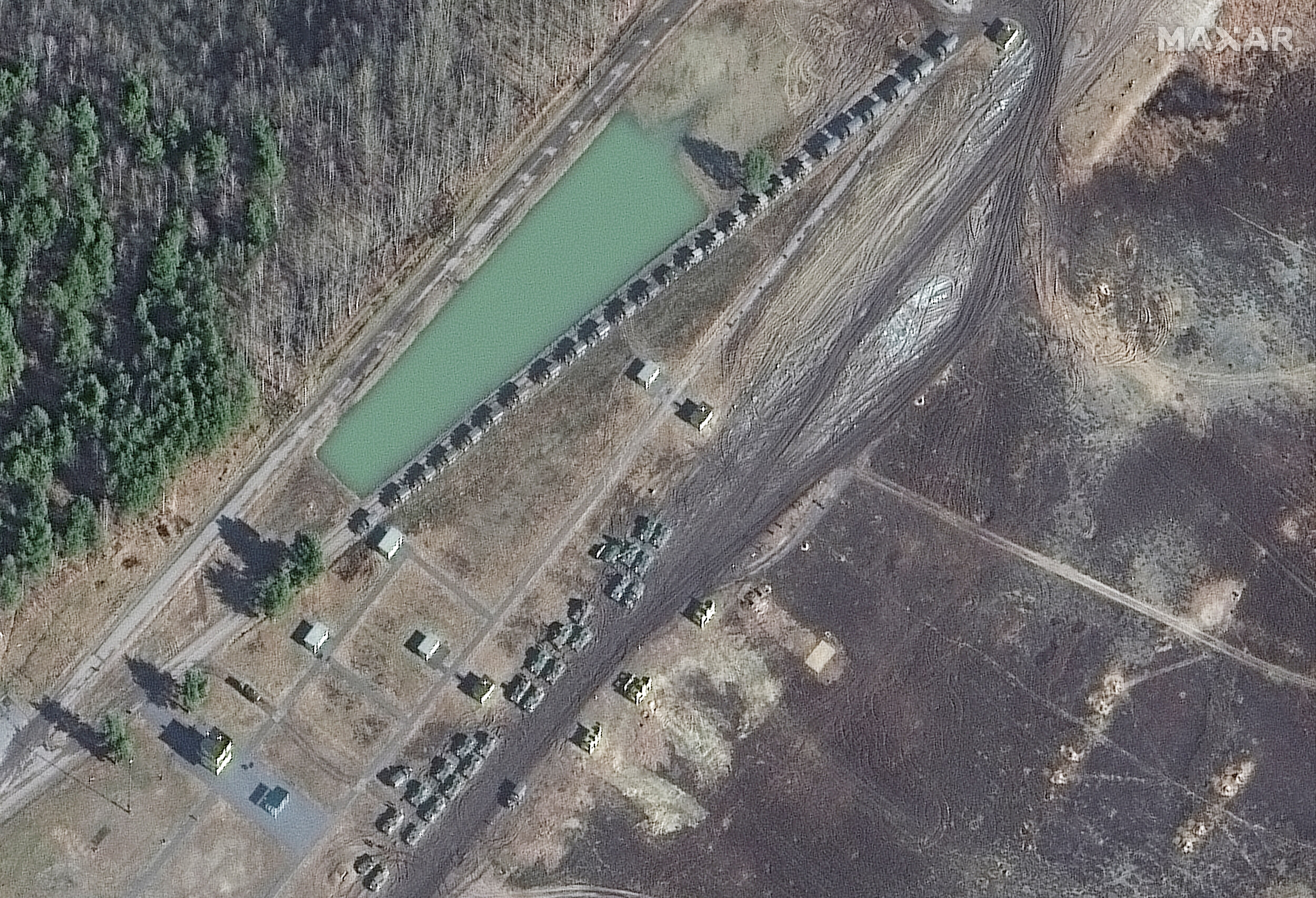 Other satellite images recorded over the past two months have shown troops, housing, military equipment, helicopters, jets, armoured vehicles and long-range missile defence systems accumulating at sites dotted around Ukraine's border.