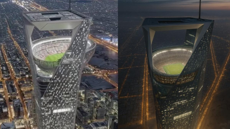 The futuristic stadium suspended in the sky remains a fan-made interpretation, while the 'Sky Stadium' concept has been officially acknowledged through the Saudi 2034 bid documents. There are no separate press releases or construction launch has been issued for a skyscraper-top venue like those seen in the AI videos.