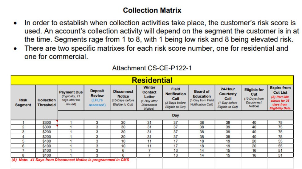After that, things diverge. The two riskiest groups are sent a disconnection notice in as little as six days, compared with 30 days for the least-risky groups. Those risky groups can be shut off in 16 days, compared with 40 days for the least-risky customers.