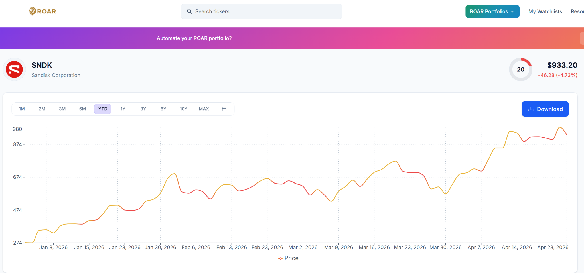 And while SNDQ does not have the runway to have a ROAR Score yet, the important thing to remember is this: with that new ETF now listed, SNDK bears have a new sandbox to play in.