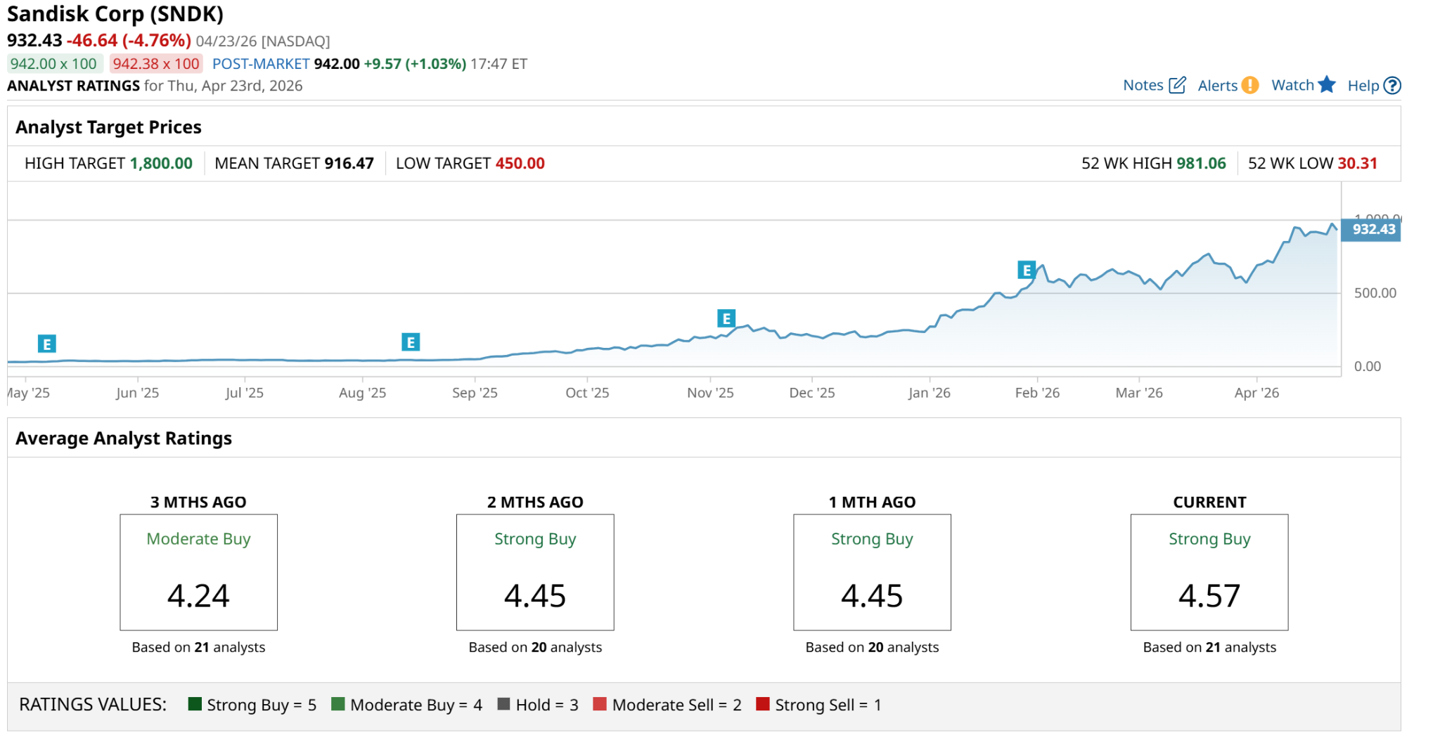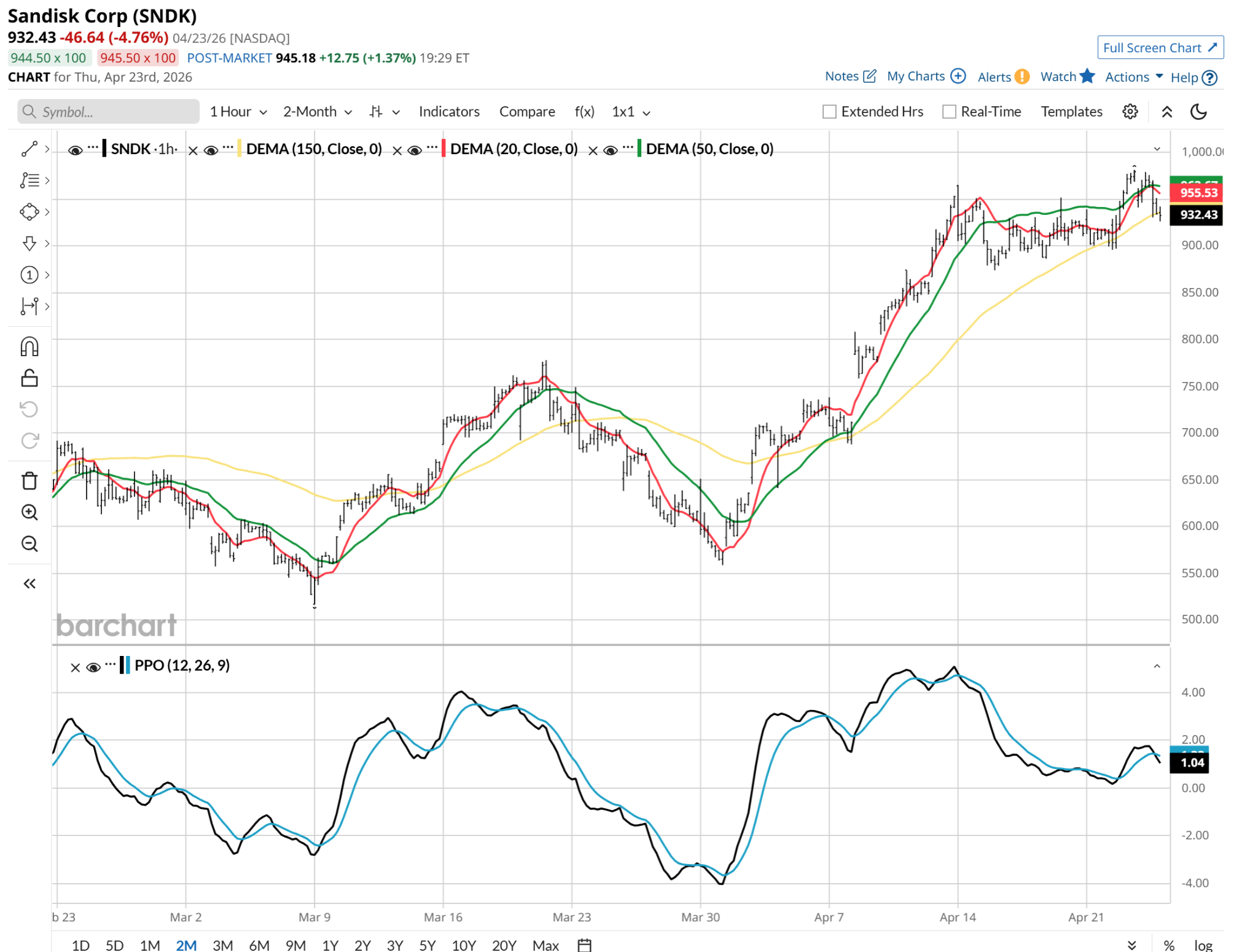 The timing of the launch is precision-engineered to coincide with a major shift in the sentiment surrounding SNDK, a company that has become a proxy for the AI NAND demand surge. After a meteoric rally that culminated in its official inclusion in the Nasdaq-100 Index ($IUXX) on April 20, SNDK is currently facing its first real test of price exhaustion. Or put more properly, the sugar high that often wears off.