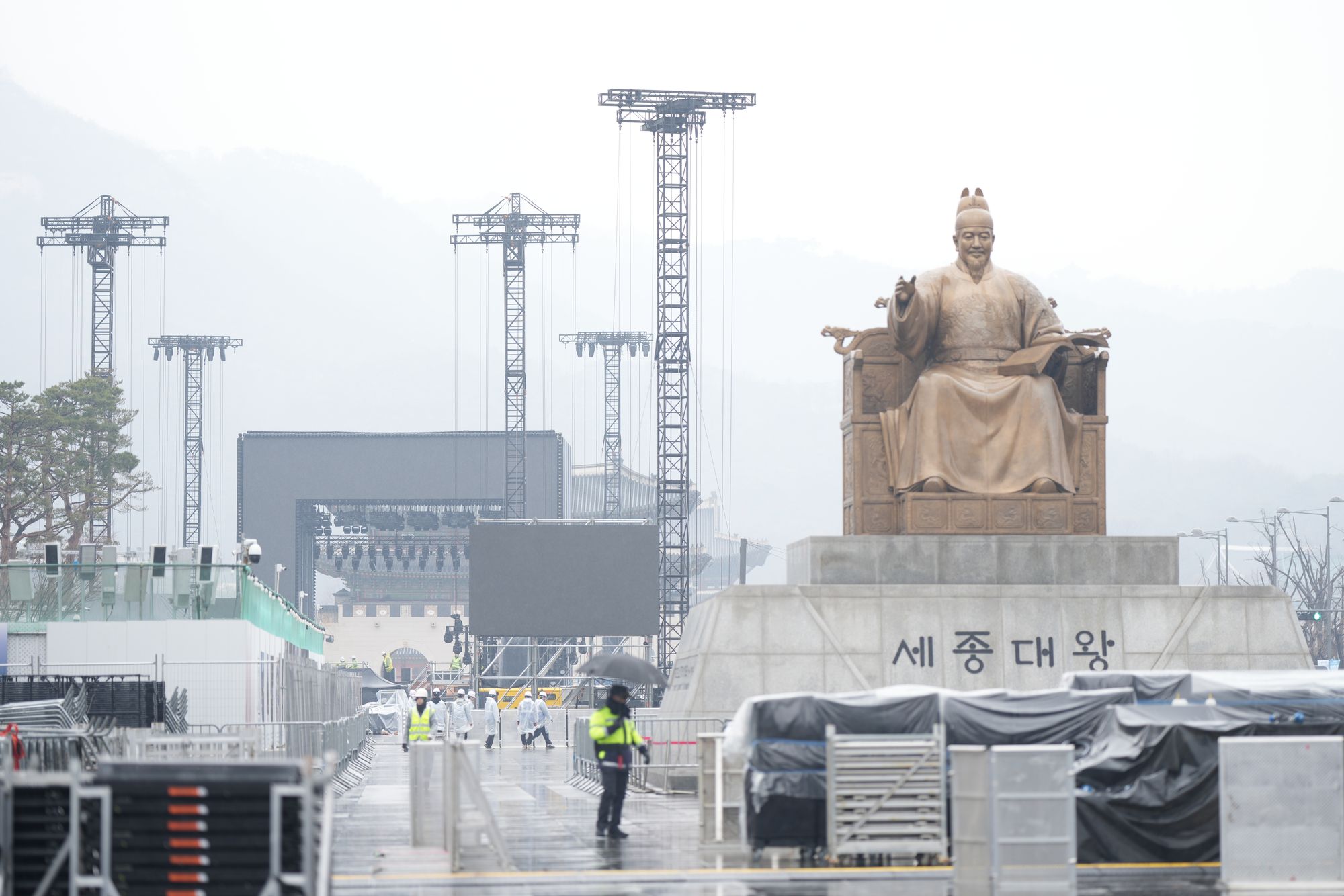 Unlike stadiums and arenas typically used for K-pop concerts, Gwanghwamun Square is an open civic plaza, located in front of Gyeongbokgung Palace, the main royal palace of the Joseon dynasty. One of the country’s most iconic public spaces, the square is used for national ceremonies, civic events, and protest gatherings.