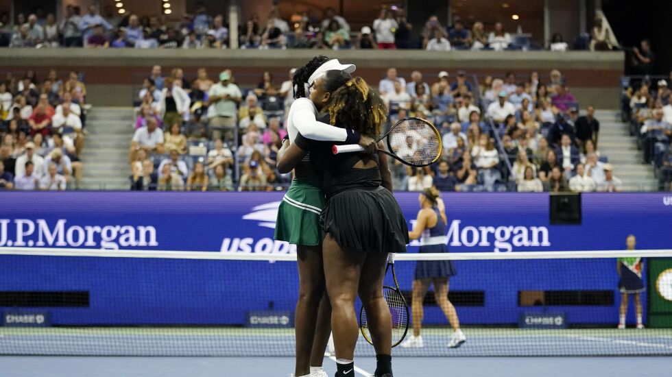 NEW YORK — Serena and Venus Williams traded fist bumps or palm slaps and chatted between points. They smiled while conversing in their seats at changeovers.
