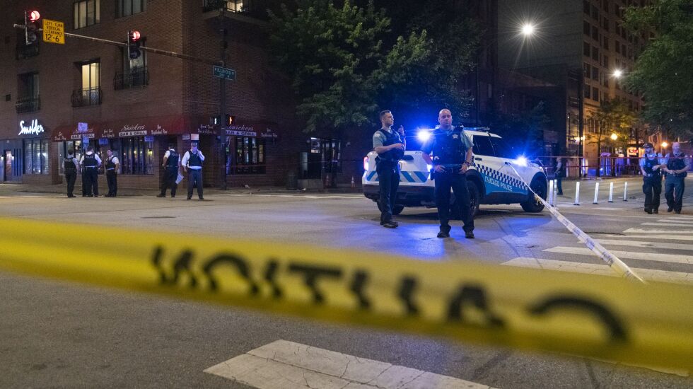 In Sunday’s River North shooting, a witness told police that someone in a white sedan opened fire while headed south on State Street, wounding three men and a woman, according to police.