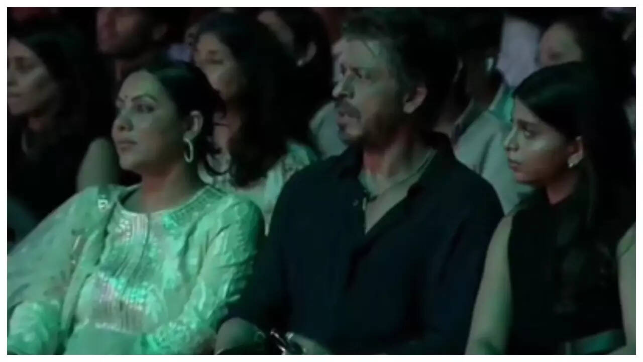 In a video making rounds on social media, Shah Rukh can be seen seated with Gauri to his right and Suhana to his left. Much to his Daughter's surprise, as the children performed LIVE on the big stage, Shah Rukh also began singing along to the lyrics of the son, while cheering for the children.