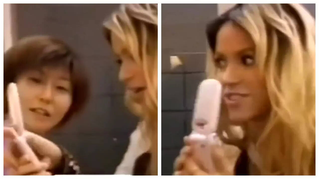 In the video, the pop icon is visibly astonished as she watches in amazement as an Asian fan takes her photos on the flip phone. The singer and a member of her team seemed even more amused when the lady revealed that the phone could also take video recordings.