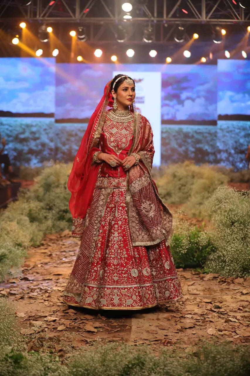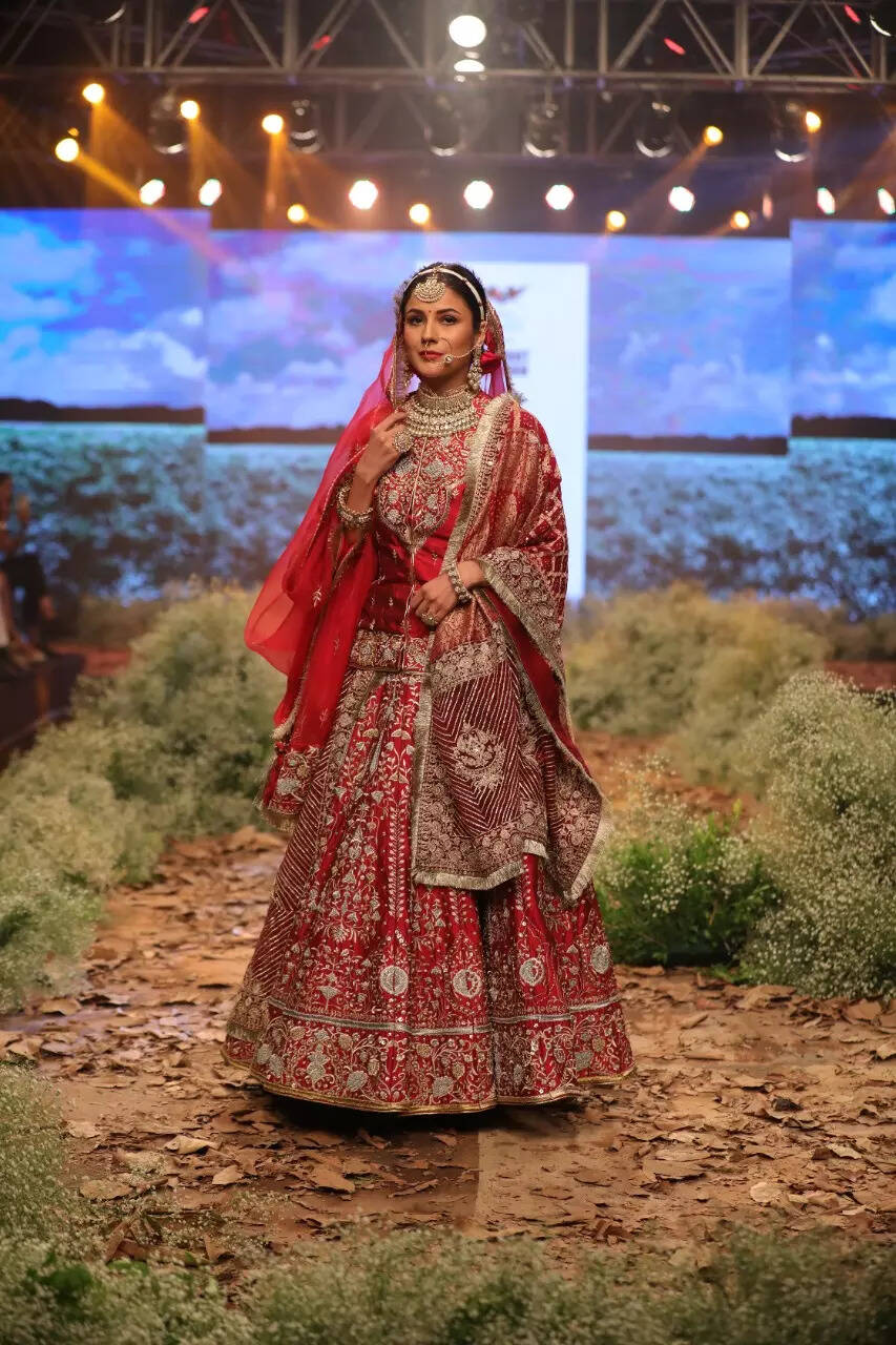 The 28-year-old danced and shimmied on the runway and made for a fun bride while walking the ramp for the designer. Shehnaaz even twirled around to let the lehenga unfurl in all its glory thereby showing the intricate work done on it.